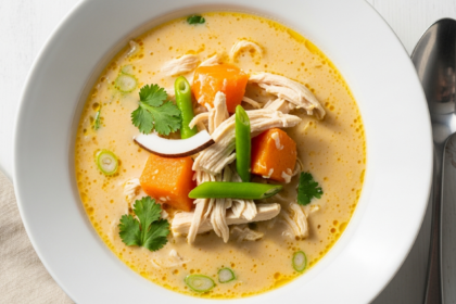 Dive into the vibrant world of Aromatic Thai Coconut Chicken Soup-a fragrant…